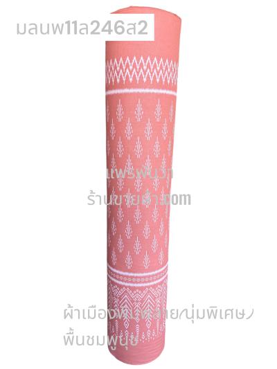 ผ้าเมืองพิมพ์ลาย-พื้นสี พื้นชมพูนุช ลายเปียกปูน สีขาวนวล
