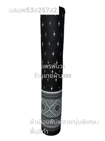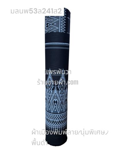 ผ้าเมืองพิมพ์ลาย(นุ่มพิเศษ)พื้นดำ พื้นดำ ลายลิซ่า สีขาวนวล