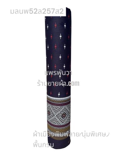 ผ้าเมืองพิมพ์ลาย(นุ่มพิเศษ)พื้นสี พื้นกรม ลายลายเพชร สีขาวนวล