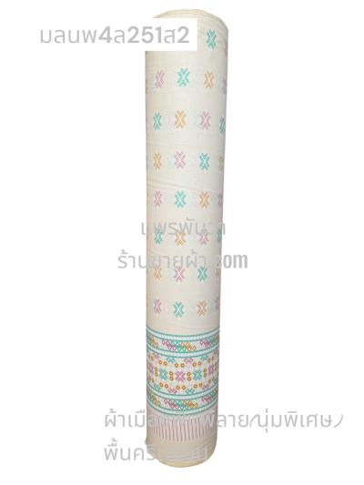 ผ้าเมืองพิมพ์ลาย(นุ่มพิเศษ)พื้นสี พื้นครีมอ่อน ลายลายลูกเต๋า สีขาวนวล