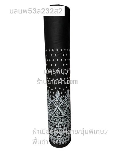 ผ้าเมืองพิมพ์ลาย(นุ่มพิเศษ)พื้นดำ พื้นดำ ลายลายต้นสน(ลิซ่า) สีขาวนวล