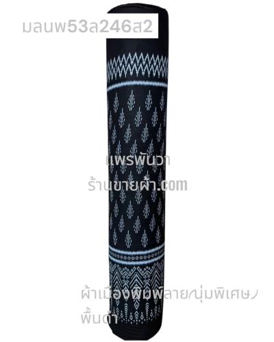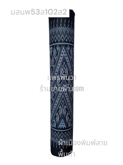 ผ้าเมืองพิมพ์ลาย(นุ่มพิเศษ)พื้นดำ พื้นดำ ลายนาค สีขาวนวล