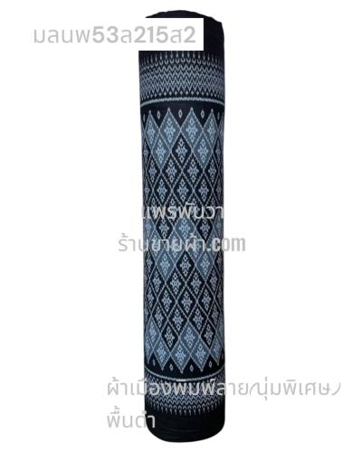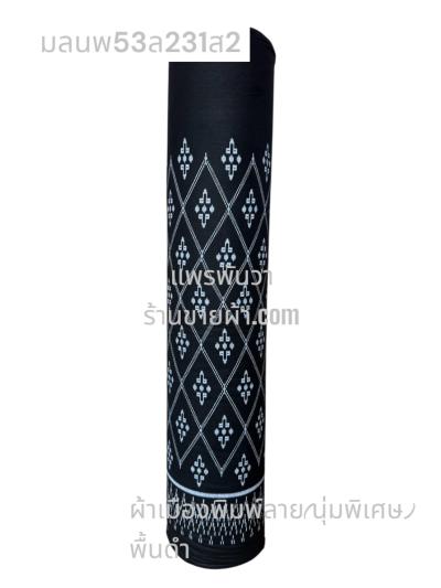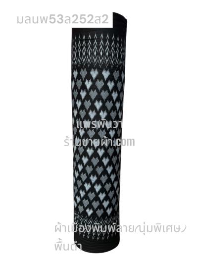 ผ้าเมืองพิมพ์ลาย(นุ่มพิเศษ)พื้นดำ พื้นดำ ลายลายเพชร สีขาวนวล