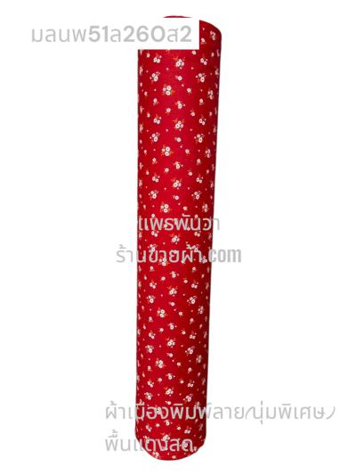 ผ้าเมืองพิมพ์ลาย(นุ่มพิเศษ)พื้นสี พื้นแดงสด ลายดอกเดซี่ มินิมอล สีขาวนวล