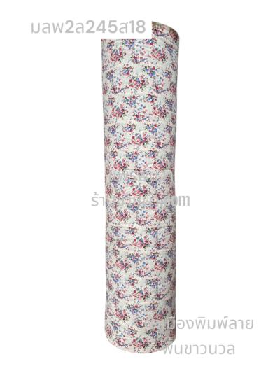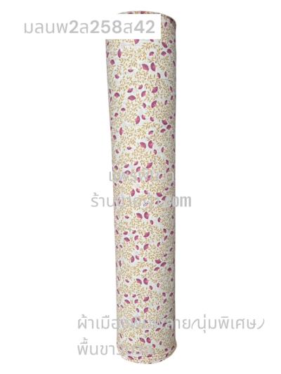 ผ้าเมืองพิมพ์ลาย(นุ่มพิเศษ)พื้นขาว พื้นขาวนวล ลายลายดอกพัด สีชมพูกะปิ