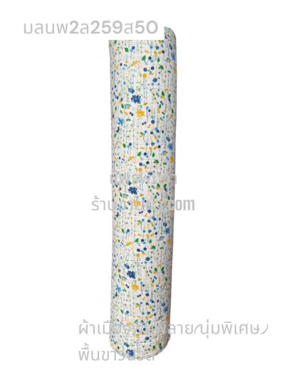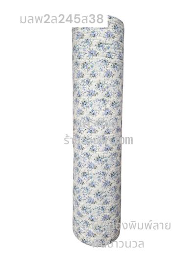 ผ้าเมืองพิมพ์ลาย-พื้นขาว พื้นขาวนวล ลายดอกยิปโซ สีฟ้าทะเล