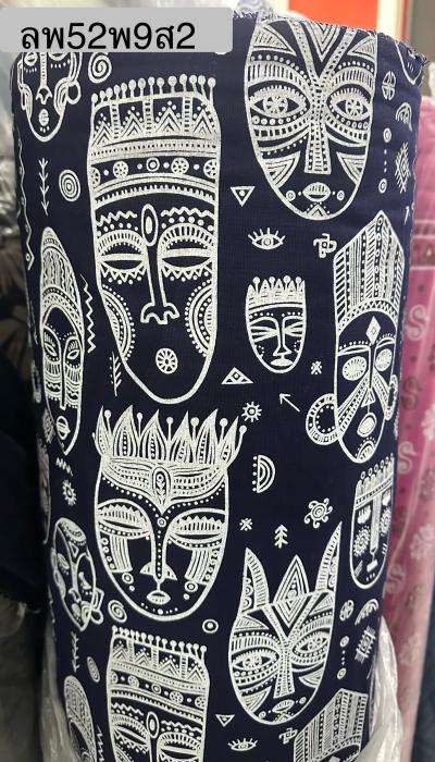 ผ้าเมืองพิมพ์ลาย-พื้นสี พื้นกรม ลายหน้ากาก สีขาวนวล