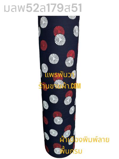 ผ้าเมืองพิมพ์ลาย-พื้นสี พื้นกรม ลายพลุสองดอก สีแดงสด