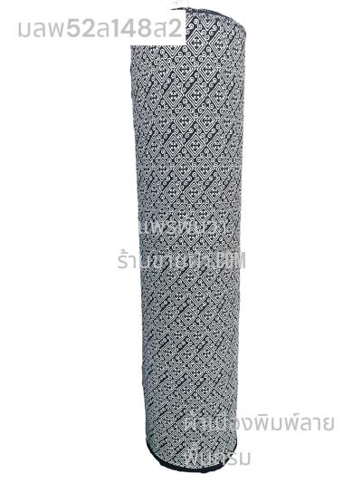ผ้าหมักโคลน(พุ่งด้ายดำ)พิมพ์ลาย พื้นกรม ลายลายไทย เชิงข้าวหลามตัด สีขาวนวล
