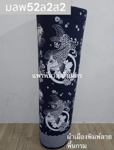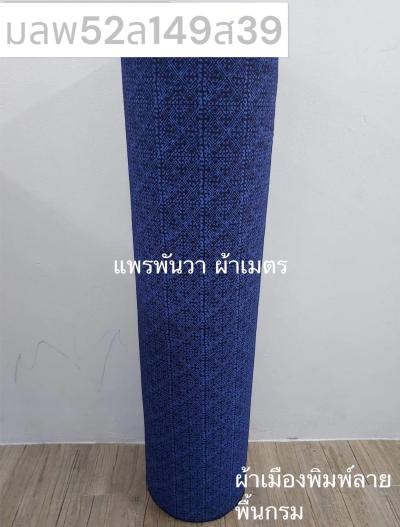 ผ้าเมืองพิมพ์ลาย(นุ่มพิเศษ)พื้นสี พื้นกรม ลายเมืองลายไทยพิมพ์ทอง สีพิมพ์ทองทั่วไป