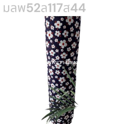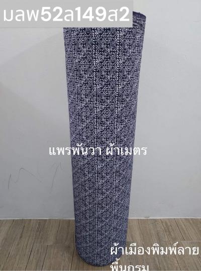 ผ้าเมืองพิมพ์ลาย-พื้นสี พื้นกรม ลายกุหลาบกรม สีขาวนวล