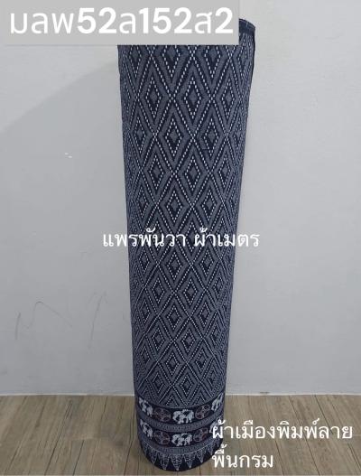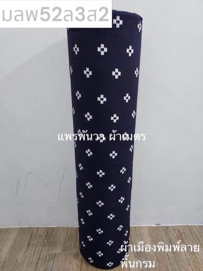 ผ้าเมืองพิมพ์ลาย(นุ่มพิเศษ)พื้นสี พื้นกรม ลายลายเพชร สีขาวนวล