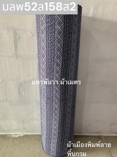 ผ้าเมืองพิมพ์ลาย-พื้นสี พื้นกรม ลายเขียนแถบเหลี่ยมไม่มีเชิง สีฟ้าเทา