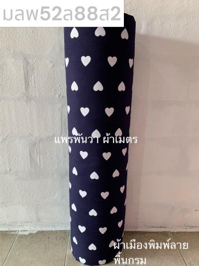 ผ้าเมืองพิมพ์ลาย-พื้นสี พื้นกรม ลายหัวใจ สีขาวนวล