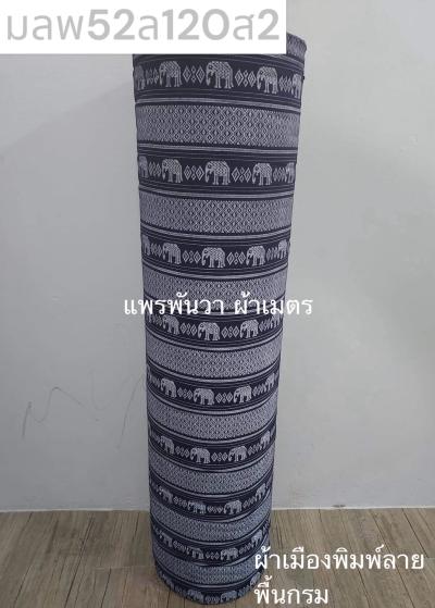 ผ้าเมืองพิมพ์ลาย-พื้นสี พื้นกรม ลายช้างผอม สีขาวนวล