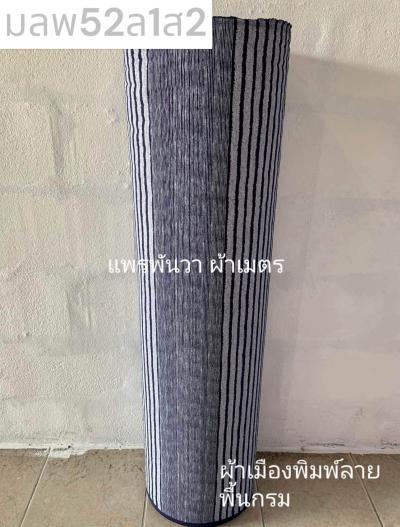 ผ้าเมืองพิมพ์ลาย(นุ่มพิเศษ)พื้นสี พื้นกรม ลายบาร์โค้ดใหม่ สีฟ้าเทา