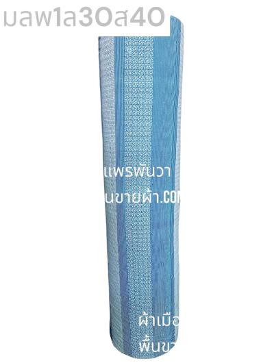 ผ้าเมืองพิมพ์ลาย-พื้นขาว พื้นขาวจั๊วะ ลายบาร์โค้ดใหม่ สีฟ้าสด