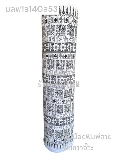 ผ้าเมืองพิมพ์ลาย-พื้นขาว พื้นขาวจั๊วะ ลายบาร์โค้ดใหม่ สีกรม