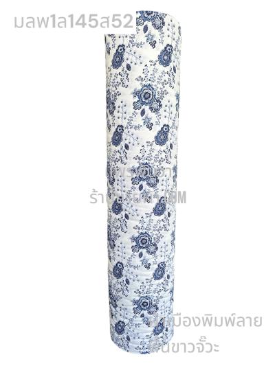 ผ้าเมืองพิมพ์ลาย-พื้นขาว พื้นขาวจั๊วะ ลายดอกโอเปิ้ล สีกรม