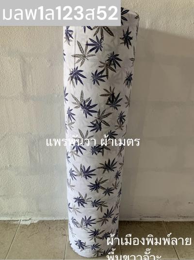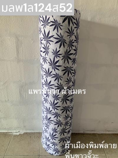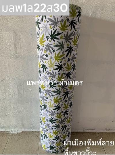 ผ้าเมืองพิมพ์ลาย-พื้นขาว พื้นขาวจั๊วะ ลายกัญชา สีกรม