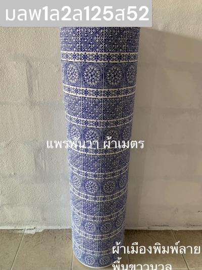 ผ้าเมืองพิมพ์ลาย-พื้นขาว พื้นขาวจั๊วะ ลายอิชิตัน สีกรม