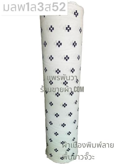 ผ้าเมืองพิมพ์ลาย-พื้นขาว พื้นขาวจั๊วะ ลายแต้มบวก สีกรม