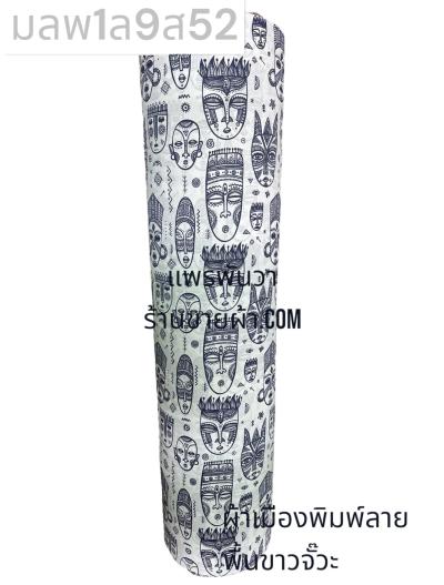 ผ้าเมืองพิมพ์ลาย-พื้นขาว พื้นขาวจั๊วะ ลายหน้ากาก สีกรม