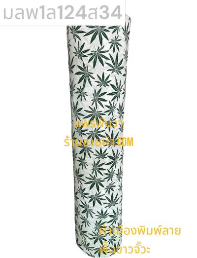 ผ้าเมืองพิมพ์ลาย-พื้นขาว พื้นขาวจั๊วะ ลายกัญชา สีเขียวเข้ม