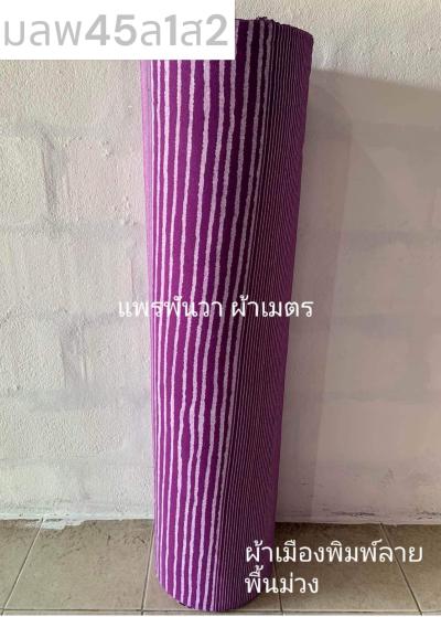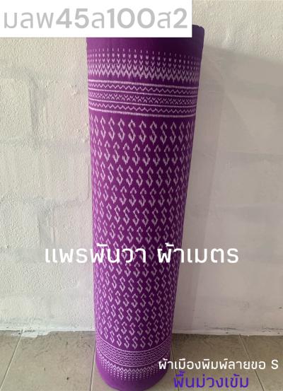 ผ้าเมืองพิมพ์ลาย(นุ่มพิเศษ)พื้นสี พื้นม่วงเข้ม ลายลายแพรวา สีขาวนวล