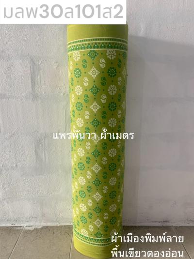 ผ้าเมืองกรุงเทพ สีพื้น พื้นเขียวตองอ่อน ลาย สี