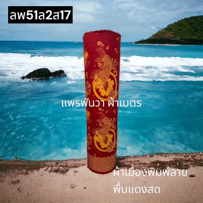 ผ้าลายตรุษจีน พื้นแดงสด ลายมังกรหงษ์ฟ้า สีพิมพ์ทองทั่วไป