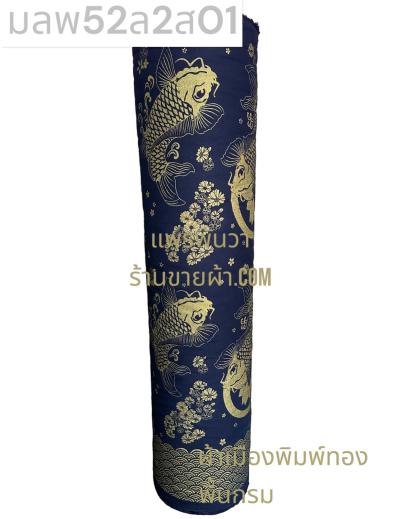 ผ้าลายตรุษจีน พื้นกรม ลายปลาคราฟ สีพิมพ์ทองทั่วไป