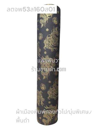 ผ้าลายตรุษจีน พื้นดำ ลายมังกรใหญ่ สีพิมพ์ทองเต็ม