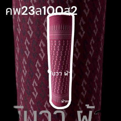 ผ้าหมักโคลน(พุ่งด้ายดำ)พิมพ์ลาย พื้นกรม ลายลายชฎา เชิงแดง สีแดงสด