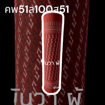 ผ้าหมักโคลน(พุ่งด้ายดำ)พิมพ์ลาย พื้นแดงสด ลายขอ กนก สีขาวนวล