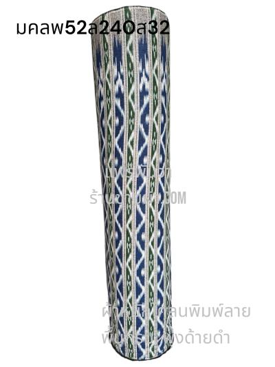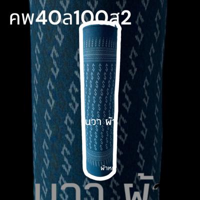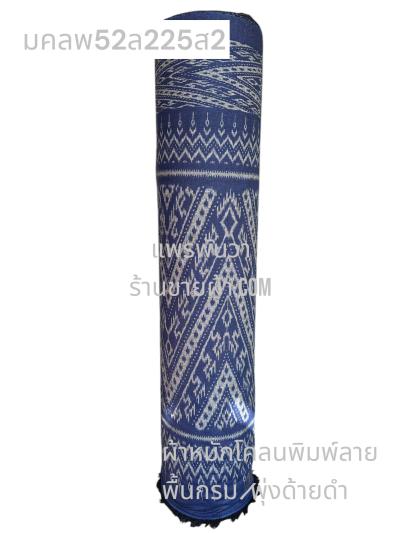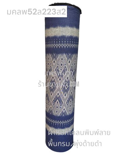 ผ้าหมักโคลน(พุ่งด้ายดำ)พิมพ์ลาย พื้นกรม ลายซิ่นลาว สีฟ้าสด