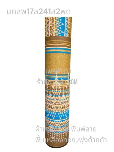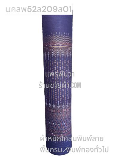 ผ้าหมักโคลน(พุ่งด้ายดำ)พิมพ์ลาย พื้นกรม ลายsเล็ก สีพิมพ์ทองทั่วไป