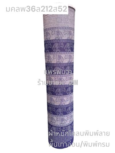 ผ้าหมักโคลน(พุ่งด้ายดำ)พิมพ์ลาย พื้นเทาอ่อน ลายช้างงาแหลม สีกรม