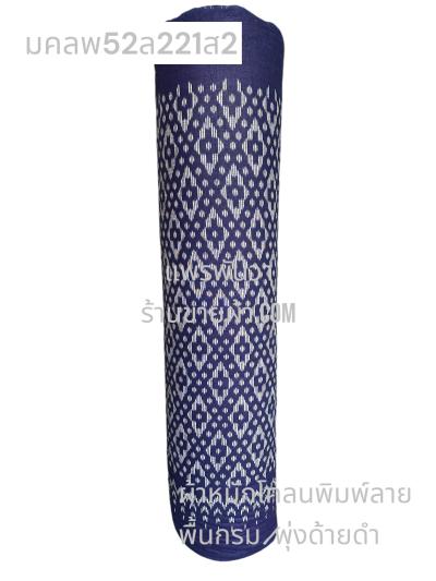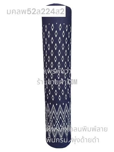 ผ้าหมักโคลน(พุ่งด้ายดำ)พิมพ์ลาย พื้นกรม ลายลายไทย เชิงข้าวหลามตัด สีขาวนวล