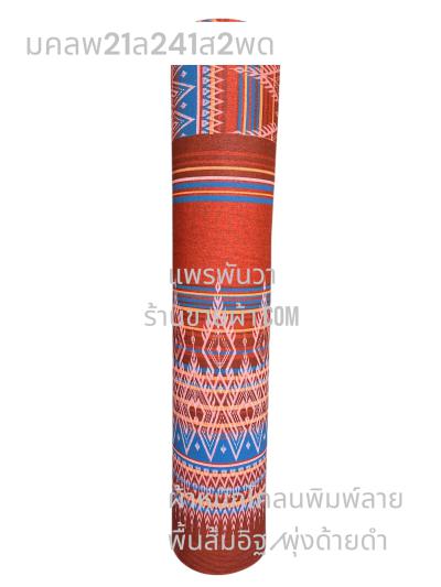 ผ้าหมักโคลน(พุ่งด้ายดำ)พิมพ์ลาย พื้นส้มอิฐ ลายลายต้นสน(ลิซ่า) สีขาวนวล