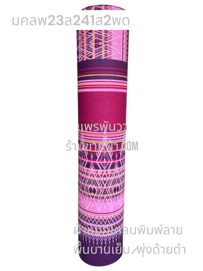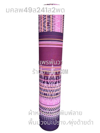 ผ้าหมักโคลน(พุ่งด้ายดำ)พิมพ์ลาย พื้นม่วงมะปราง ลายลายต้นสน(ลิซ่า) สีขาวนวล