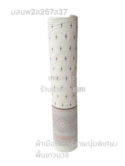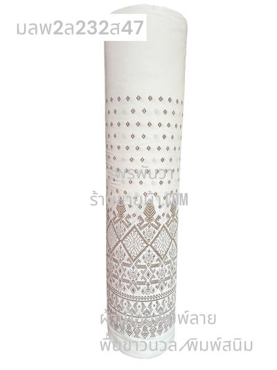 ผ้าเมืองพิมพ์ลาย(นุ่มพิเศษ)พื้นขาว พื้นขาวนวล ลายฉัตรสวรรค์ สีเปลือกไม้อ่อน