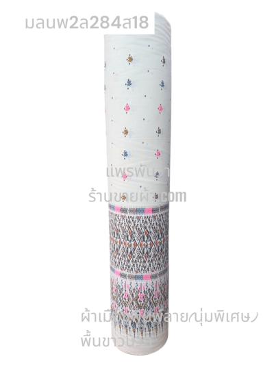 ผ้าเมืองพิมพ์ลาย(นุ่มพิเศษ)พื้นขาว พื้นขาวนวล ลายซิ่นภูไท สีชมพูหวาน
