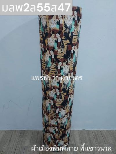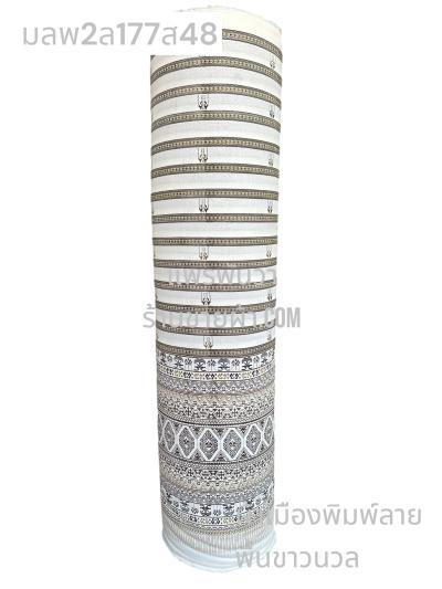 ผ้าเมืองพิมพ์ลาย(นุ่มพิเศษ)พื้นขาว พื้นขาวนวล ลายซิ่นไทย สีกรม