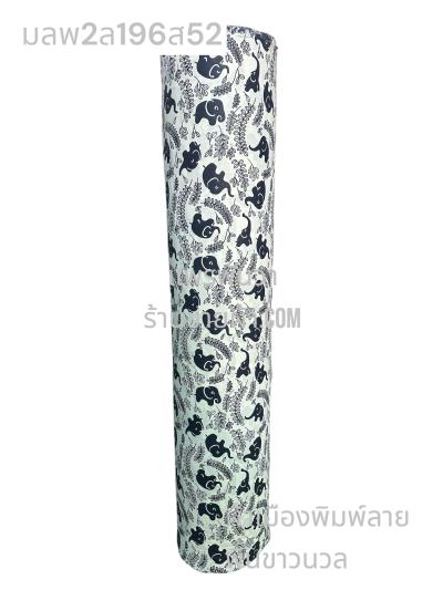 ผ้าเมืองพิมพ์ลาย(นุ่มพิเศษ)พื้นขาว พื้นขาวนวล ลายช้างผอม สีดำ