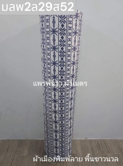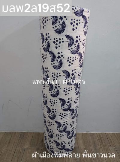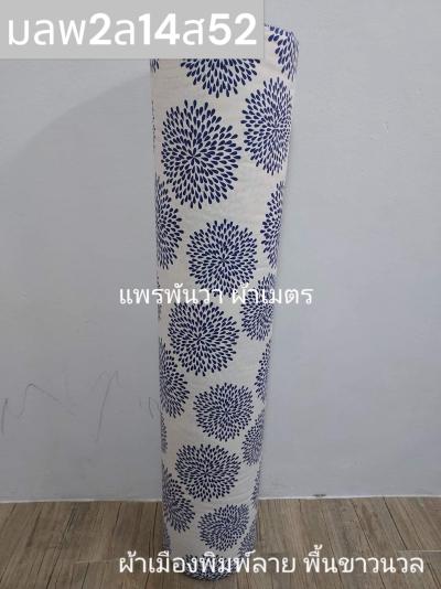 ผ้าเมืองพิมพ์ลาย(นุ่มพิเศษ)พื้นขาว พื้นขาวนวล ลายพลุ สีกรม