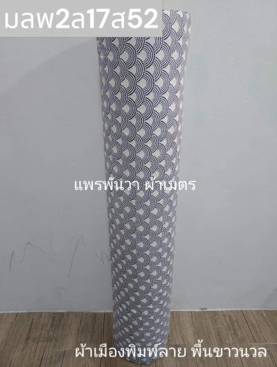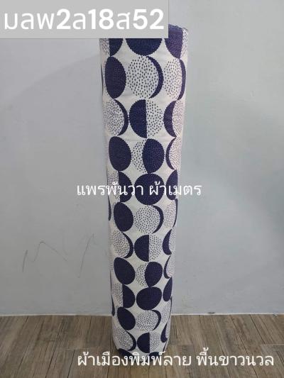 ผ้าเมืองพิมพ์ลาย(นุ่มพิเศษ)พื้นขาว พื้นขาวนวล ลายครึ่งวงกลม สีกรม