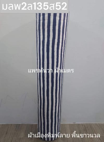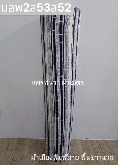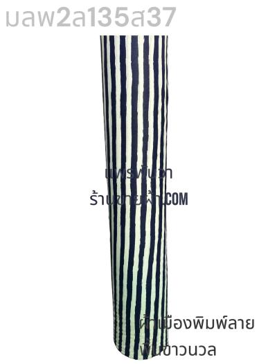 ผ้าเมืองพิมพ์ลาย(นุ่มพิเศษ)พื้นขาว พื้นขาวนวล ลายลายทาง สีกรม