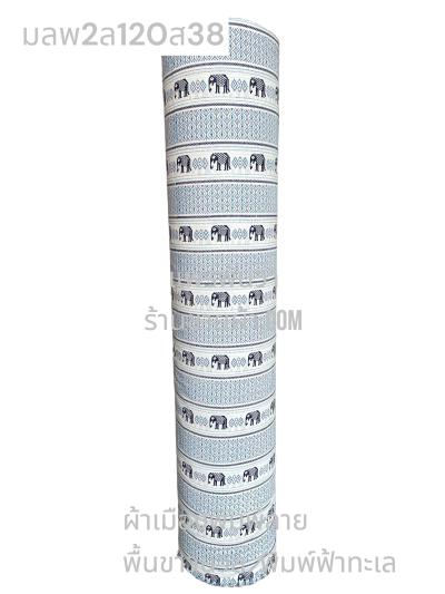 ผ้าเมืองพิมพ์ลาย(นุ่มพิเศษ)พื้นขาว พื้นขาวนวล ลายช้างผอม สีฟ้าทะเล