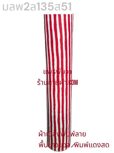 ผ้าเมืองพิมพ์ลาย(นุ่มพิเศษ)พื้นขาว พื้นขาวนวล ลายลายทาง สีแดงสด